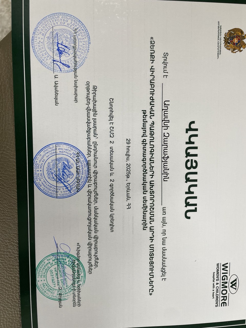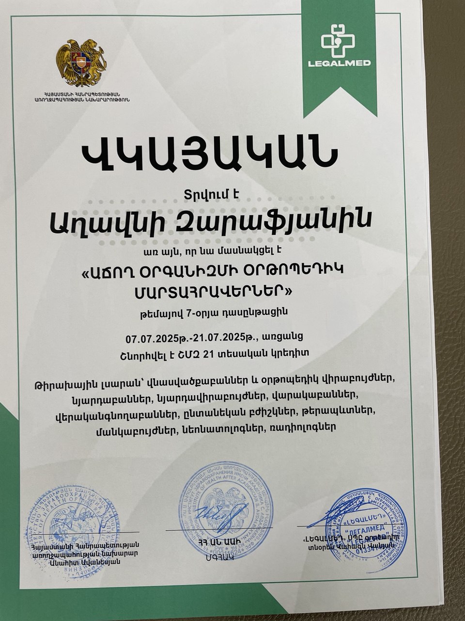 1997 թ. — Մանկական բժիշկ-վերականգնողաբանի արտոնագիր