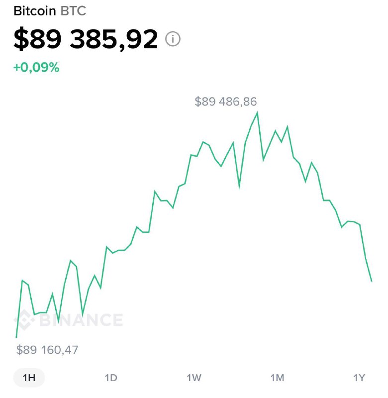 Վերջին տվյալների համաձայն, Bitcoin-ը նկատելիորեն արժեզրկվել է, արևմտյան ֆինանսական շուկաներում նրա գինը հասել է 89,385 դոլարի: Գործողությունները կրիպտոարժույթների շուկայում մեծամասամբ վկայում են տատանումների շարունակականության մասին, ինչը կարող է հանգեցնել ներդրողների մտավախություններին։